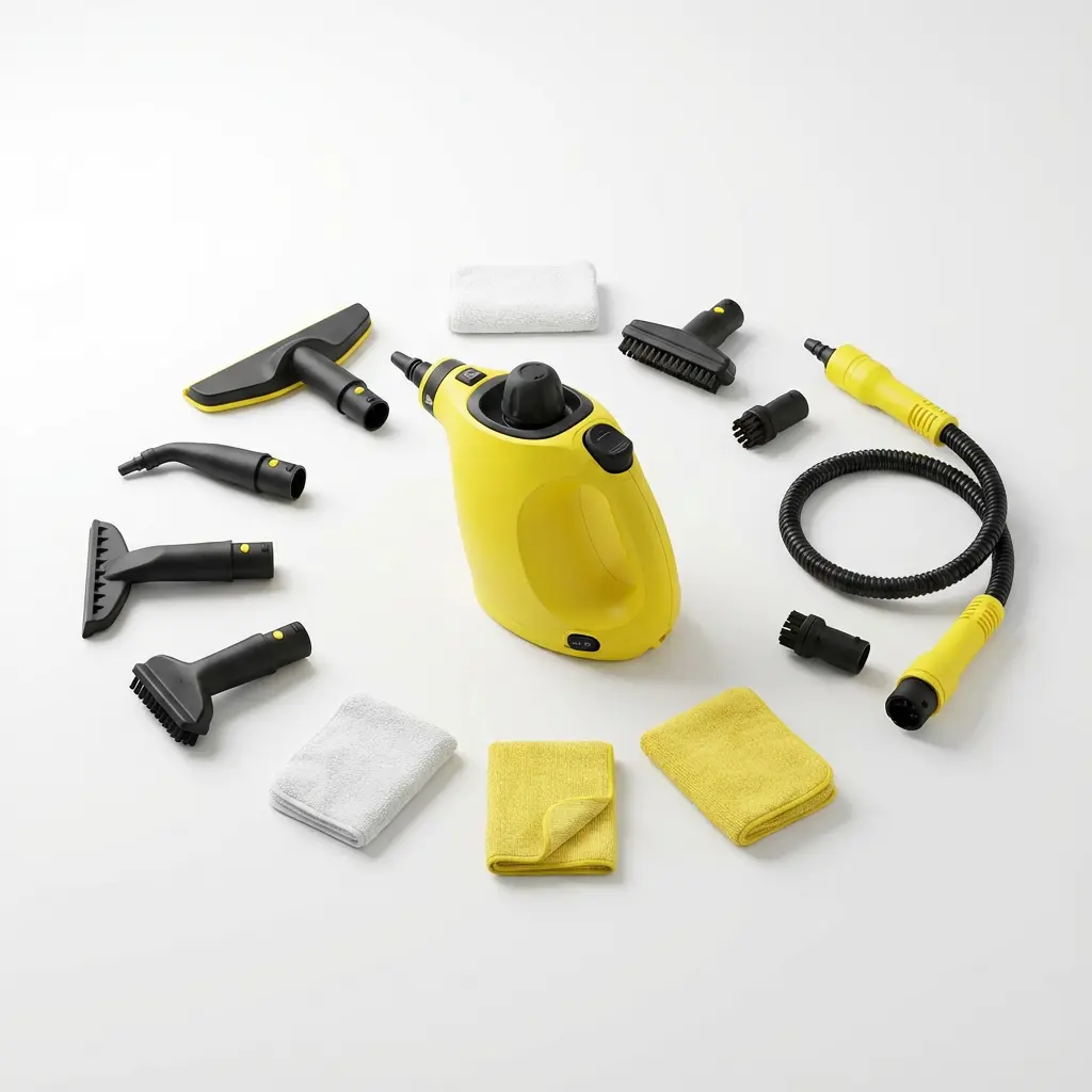 Zestaw SteamJet™ zawiera wszystko, czego potrzebujesz do sprzątania całego domu: końcówki, szczotki, ściereczki z mikrofibry i przedłużki do podłóg. Każdy element został zaprojektowany, aby maksymalnie wykorzystać moc pary i chronić czyszczone powierzchnie. System zaworów bezpieczeństwa i blokady pary gwarantuje bezpieczne użytkowanie, a ściereczka z mikrofibry pozwala usuwać brud bez kontaktu z nim.